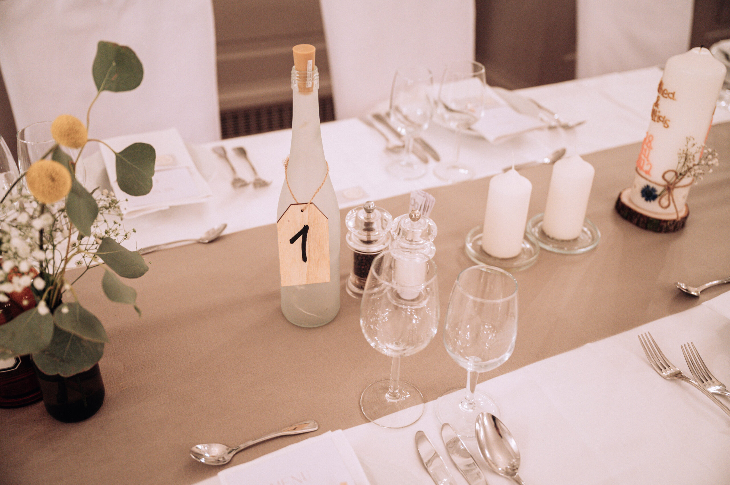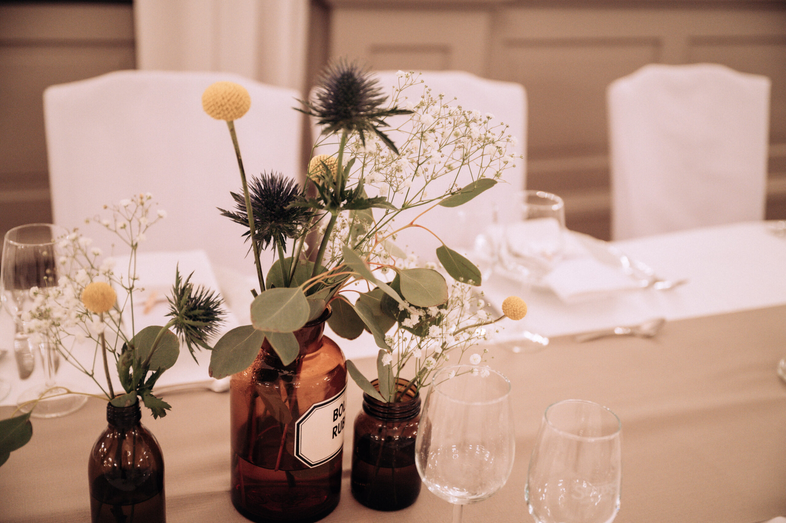 By means of screens we are able to divide the room variably and thus create the appropriate size for a number of guests from 50 to 180 people.